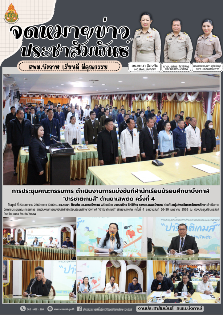 การประชุมคณะกรรมการ ดำเนินงานการแข่งขันกีฬานักเรียนมัธยมศึกษาบึงกาฬ “ปาริชาติเกมส์” ต้านยาเสพติด ครั้งที่ 4