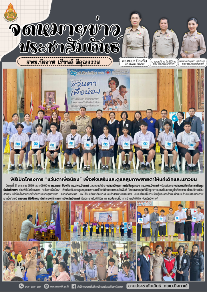 จดหมายข่าว สพม.บึงกาฬพิธีเปิดโครงการ “แว่นตาเพื่อน้อง” เพื่อส่งเสริมและดูแลสุขภาพสายตาให้แก่เด็กและเยาวชน Leave a Comment / จดหมายข่าว สพม.บึงกาฬ / นางสาววริศรา ธรรมลี