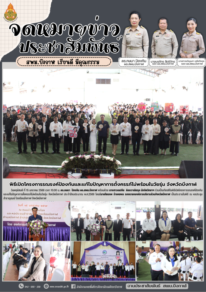 จดหมายข่าว สพม.บึงกาฬพิธีเปิดโครงการรณรงค์ป้องกันและแก้ไขปัญหาการตั้งครรภ์ไม่พร้อมในวัยรุ่น จังหวัดบึงกาฬ ประจำปีงบประมาณ พ.ศ.2569 Leave a Comment / จดหมายข่าว สพม.บึงกาฬ / นางสาววริศรา ธรรมลี
