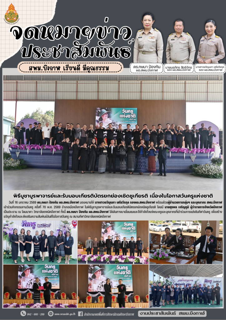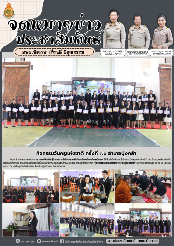 จดหมายข่าว สพม.บึงกาฬกิจกรรมวันครูแห่งชาติ ครั้งที่ ๗๐ อำเภอบุ่งคล้า Leave a Comment / จดหมายข่าว สพม.บึงกาฬ / นางสาววริศรา ธรรมลี