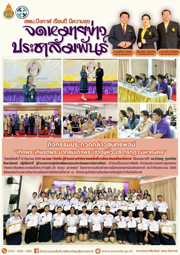 จดหมายข่าว สพม.บึงกาฬกิจกรรมประกวดกล่าวสุนทรพจน์ “เทิดพระเกียรติพระบาทสมเด็จพระเจ้าอยู่หัว 28 กรกฎา มหาคงคล” Leave a Comment / จดหมายข่าว สพม.บึงกาฬ / นางสาววริศรา ธรรมลี “เทิดพระเกียรต