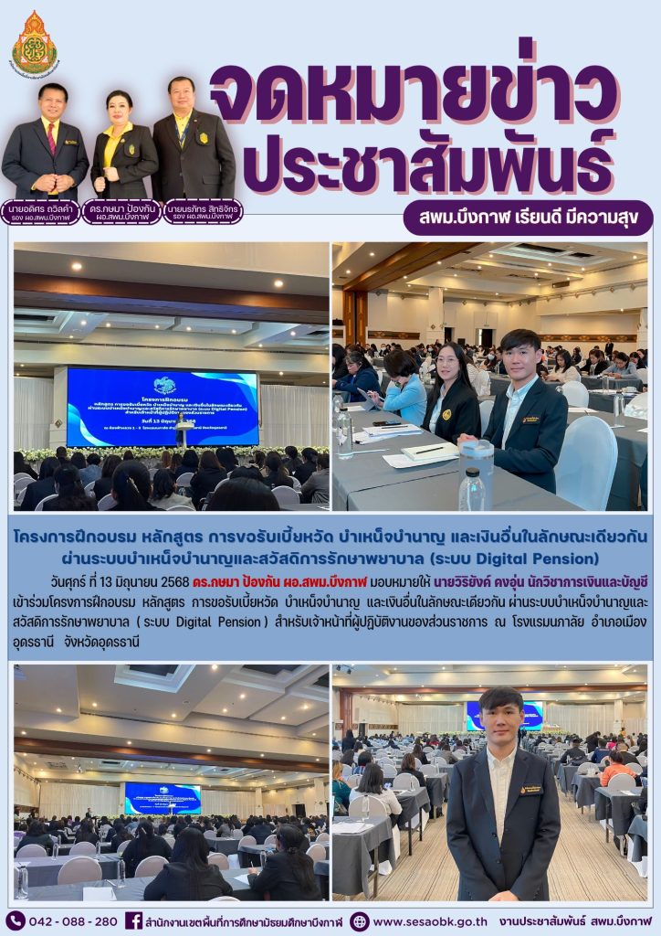 จดหมายข่าว สพม.บึงกาฬโครงการฝึกอบรม หลักสูตร การขอรับเบี้ยหวัด บำเหน็จบำนาญ และเงินอื่นในลักษณะเดียวกัน ผ่านระบบบำเหน็จบำนาญและสวัสดิการรักษาพยาบาล (ระบบ Digital Pension) Leave a Comment / จดหมายข่าว สพม.บึงกาฬ / นางสาววริศรา ธรรมลี