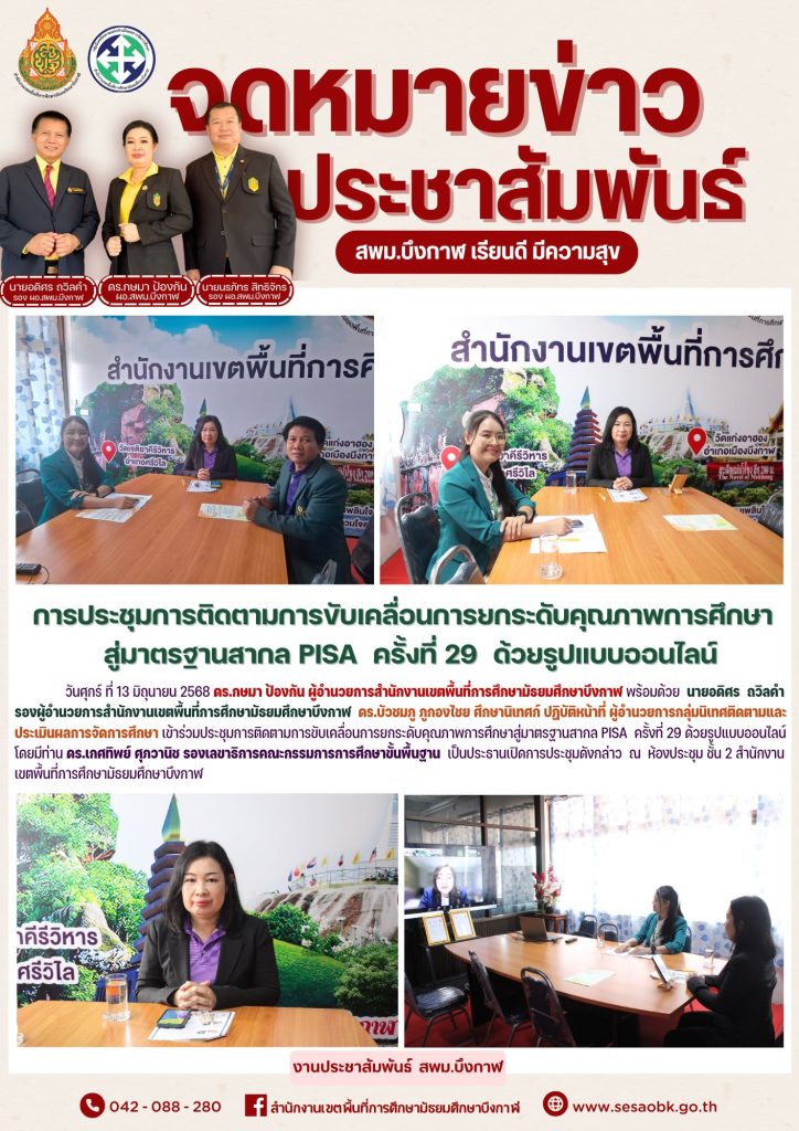 จดหมายข่าว สพม.บึงกาฬการประชุมการติดตามการขับเคลื่อนการยกระดับคุณภาพการศึกษา สู่มาตรฐานสากล PISA ครั้งที่ 29 ด้วยรูปแบบออนไลน์ Leave a Comment / จดหมายข่าว สพม.บึงกาฬ / นางสาววริศรา ธรรมลี