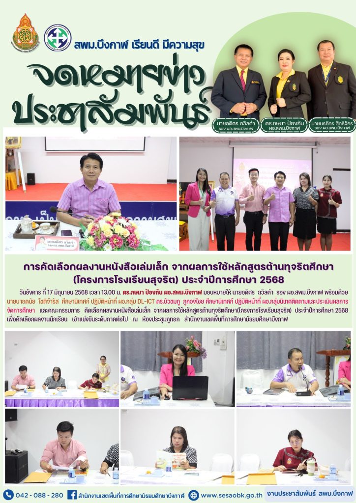 จดหมายข่าว สพม.บึงกาฬการคัดเลือกผลงานหนังสือเล่มเล็ก จากผลการใช้หลักสูตรต้านทุจริตศึกษา (โครงการโรงเรียนสุจริต) ประจำปีการศึกษา 2568 Leave a Comment / จดหมายข่าว สพม.บึงกาฬ / นางสาววริศรา ธรรมลี (โครงการโรงเรียนสุจร […]