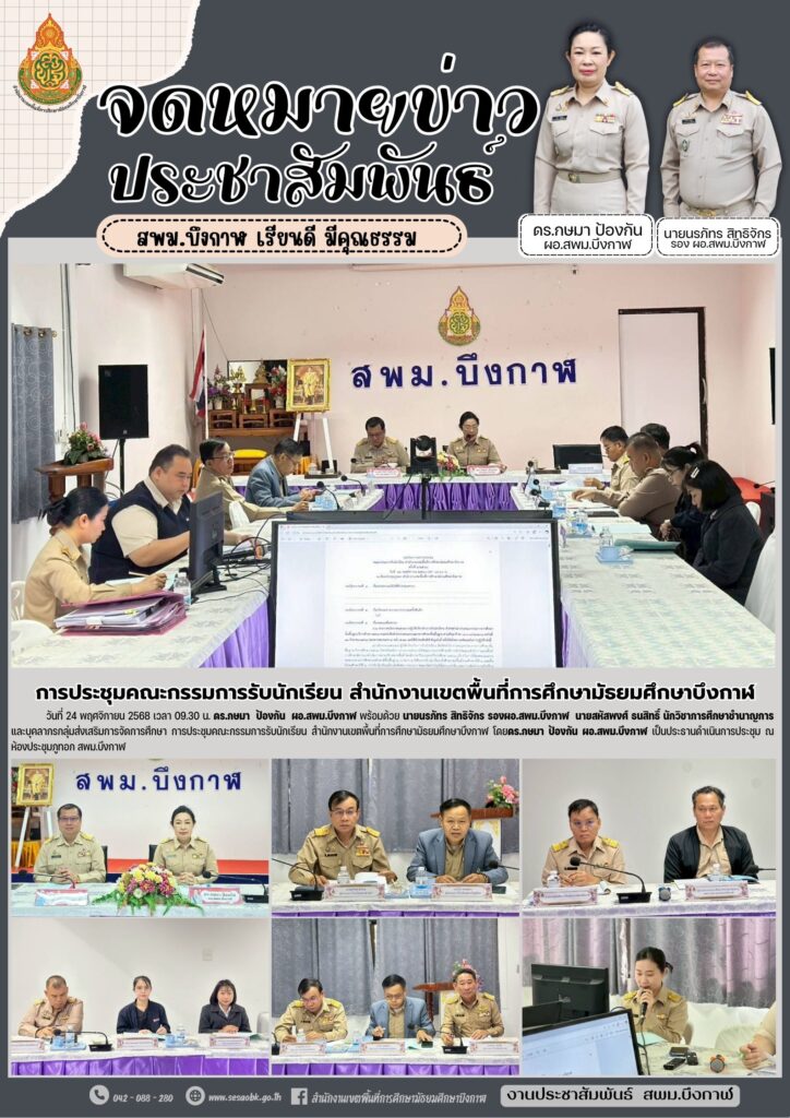 จดหมายข่าว สพม.บึงกาฬการประชุมคณะกรรมการรับนักเรียน สำนักงานเขตพื้นที่การศึกษามัธยมศึกษาบึงกาฬ Leave a Comment / จดหมายข่าว สพม.บึงกาฬ / นางสาววริศรา ธรรมลี