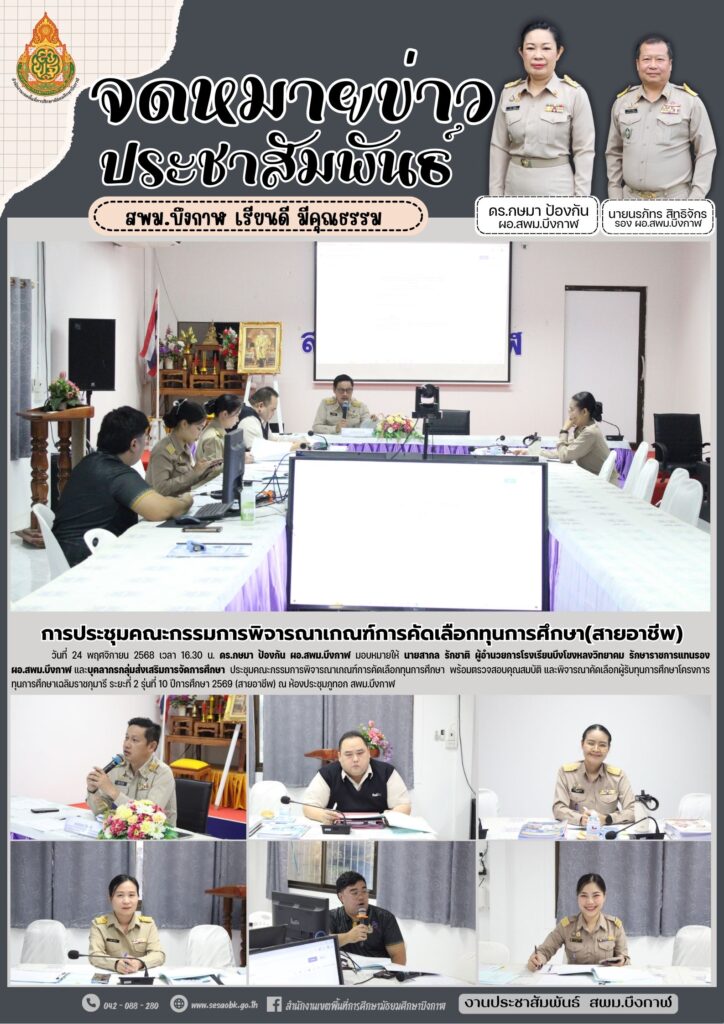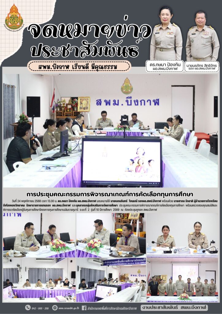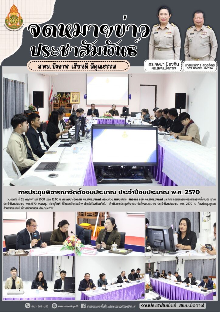 จดหมายข่าว สพม.บึงกาฬการประชุมพิจารณาจัดตั้งงบประมาณ ประจำปีงบประมาณ พ.ศ. 2570 Leave a Comment / จดหมายข่าว สพม.บึงกาฬ / นางสาววริศรา ธรรมลี