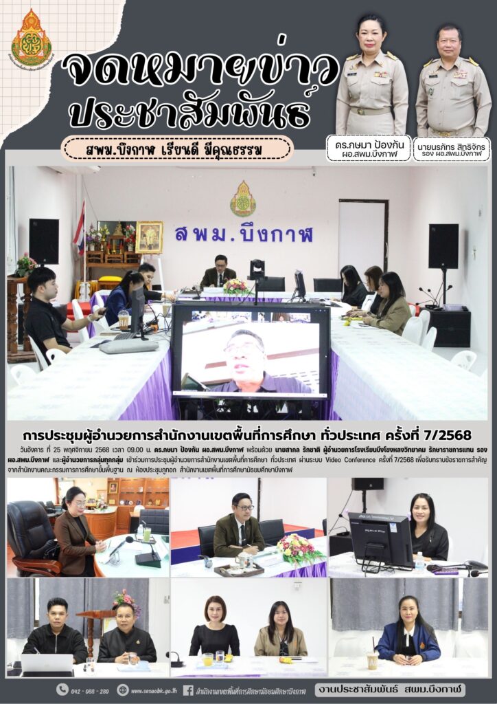 จดหมายข่าว สพม.บึงกาฬการประชุมผู้อำนวยการสำนักงานเขตพื้นที่การศึกษา ทั่วประเทศ ครั้งที่ 7/2568 Leave a Comment / จดหมายข่าว สพม.บึงกาฬ / นางสาววริศรา ธรรมลี