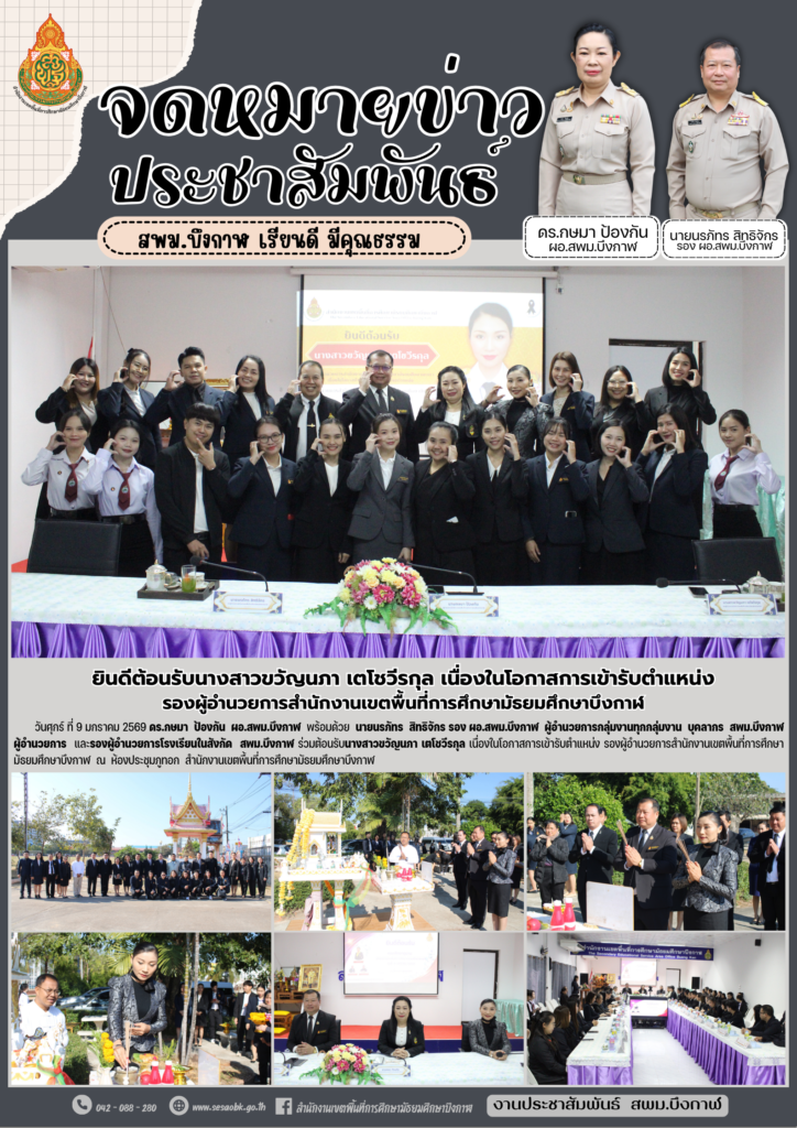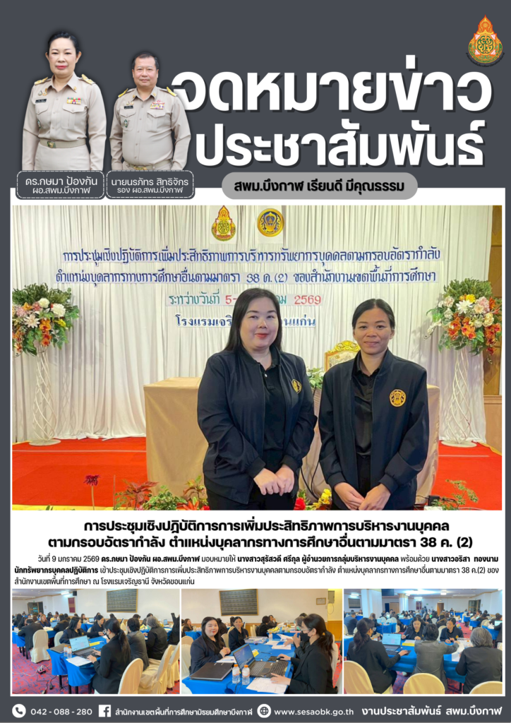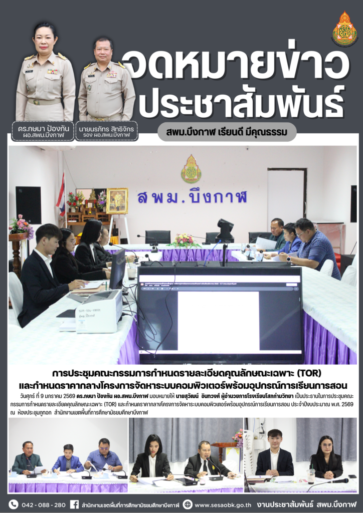 จดหมายข่าว สพม.บึงกาฬการประชุมการจัดงานวันครู ครั้งที่ 70 พ.ศ.2569 อำเภอเมืองบึงกาฬ ครั้งที่ 1/2569 Leave a Comment / จดหมายข่าว สพม.บึงกาฬ / นางสาววริศรา ธรรมลี