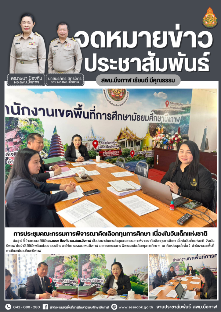 จดหมายข่าว สพม.บึงกาฬการประชุมคณะกรรมการจัดงานวันเด็กแห่งชาติ จังหวัดบึงกาฬ ประจำปี 2569 Leave a Comment / จดหมายข่าว สพม.บึงกาฬ / นางสาววริศรา ธรรมลี