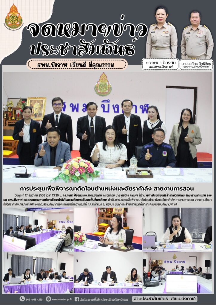 จดหมายข่าว สพม.บึงกาฬการประชุมเพื่อพิจารณาตัดโอนตำแหน่งและอัตรากำลัง สายงานการสอน Leave a Comment / จดหมายข่าว สพม.บึงกาฬ / นางสาววริศรา ธรรมลี