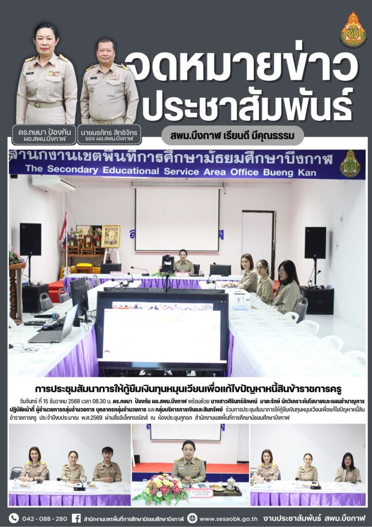 จดหมายข่าว สพม.บึงกาฬการประชุมสัมนาการให้กู้ยืมเงินทุนหมุนเวียนเพื่อแก้ไขปัญหาหนี้สินข้าราชการครู ประจำปีงบประมาณ พ.ศ.2569 Leave a Comment / จดหมายข่าว สพม.บึงกาฬ / นางสาววริศรา ธรรมลี