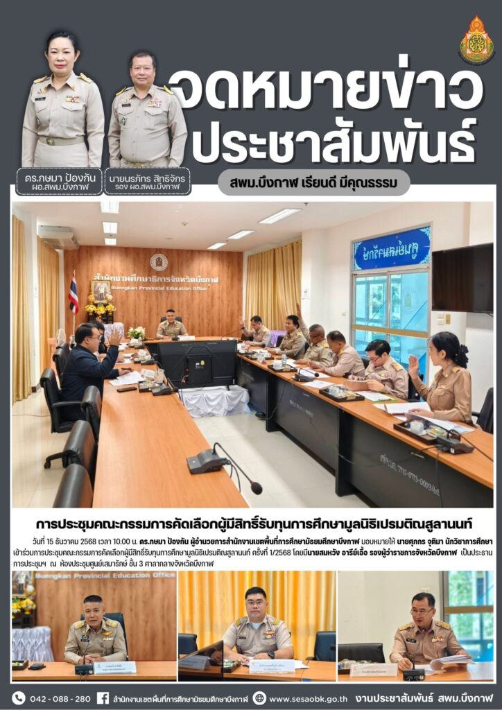 จดหมายข่าว สพม.บึงกาฬการประชุมคณะกรรมการคัดเลือกผู้มีสิทธิ์รับทุนการศึกษามูลนิธิเปรมติณสูลานนท์ ครั้งที่ 1/2568 Leave a Comment / จดหมายข่าว สพม.บึงกาฬ / นางสาววริศรา ธรรมลี