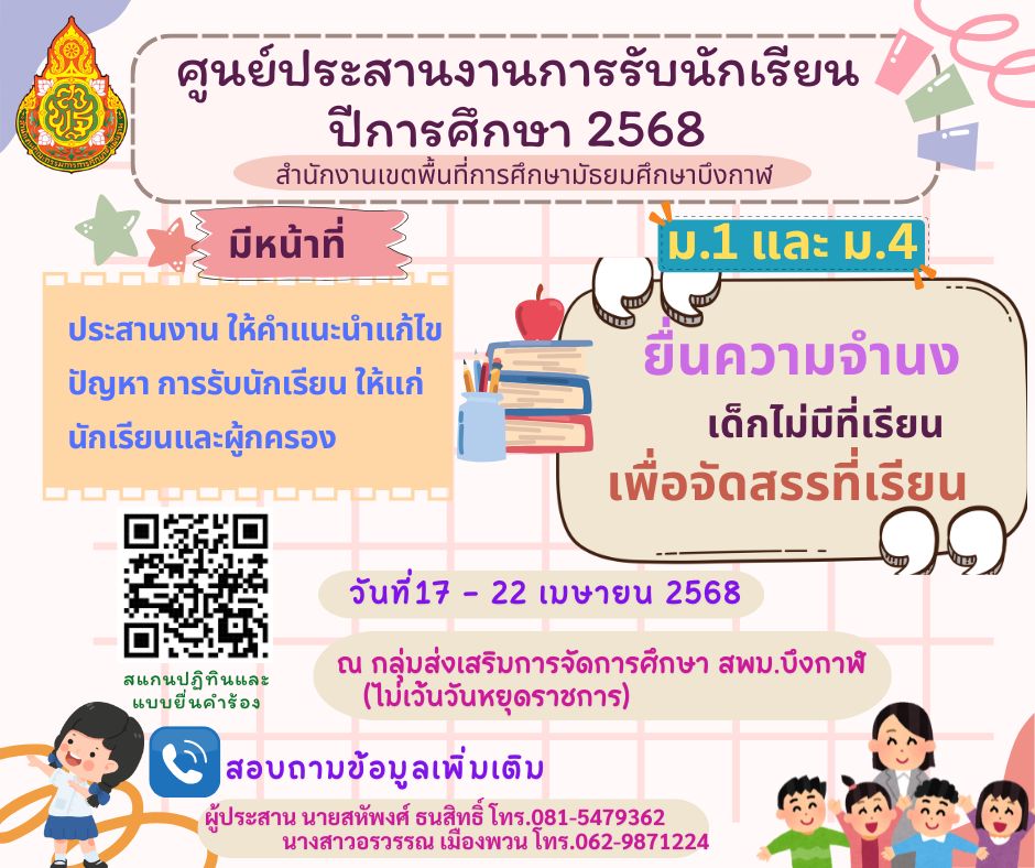 ขั้นตอนการจัดหาที่เรียนให้กับนักเรียน ที่ยังไม่มีที่เรียน ประจำปี 2568