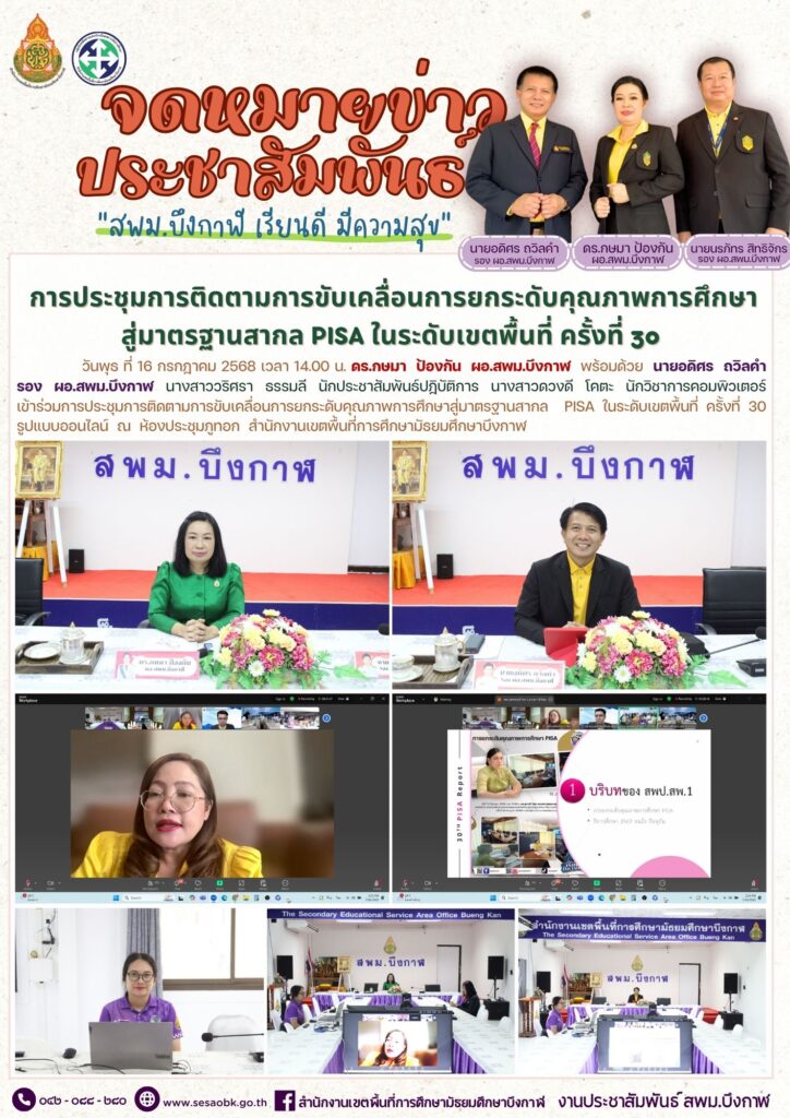 การประชุมการติดตามการขับเคลื่อนการยกระดับคุณภาพการศึกษาสู่มาตรฐานสากล PISA ในระดับเขตพื้นที่ ครั้งที่ 30By นางสาววริศรา ธรรมลี / 16 กรกฎาคม 2025