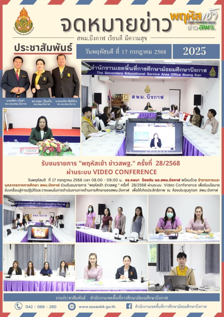 รับชมรายการ “พฤหัสเช้า ข่าวสพฐ.” ครั้งที่ 28/2568 ผ่านระบบ Video ConferenceBy นางสาววริศรา ธรรมลี / 17 กรกฎาคม 2025