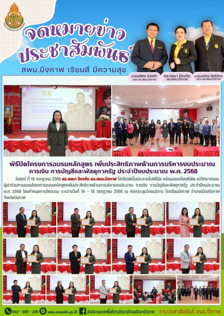 พิธีปิดโครงการอบรมหลักสูตรเพิ่มประสิทธิภาพด้านการบริหารงบประมาณ การเงิน การบัญชีและพัสดุภาครัฐ ประจำปีงบประมาณ พ.ศ. 2568By นางสาววริศรา ธรรมลี / 18 กรกฎาคม 2025