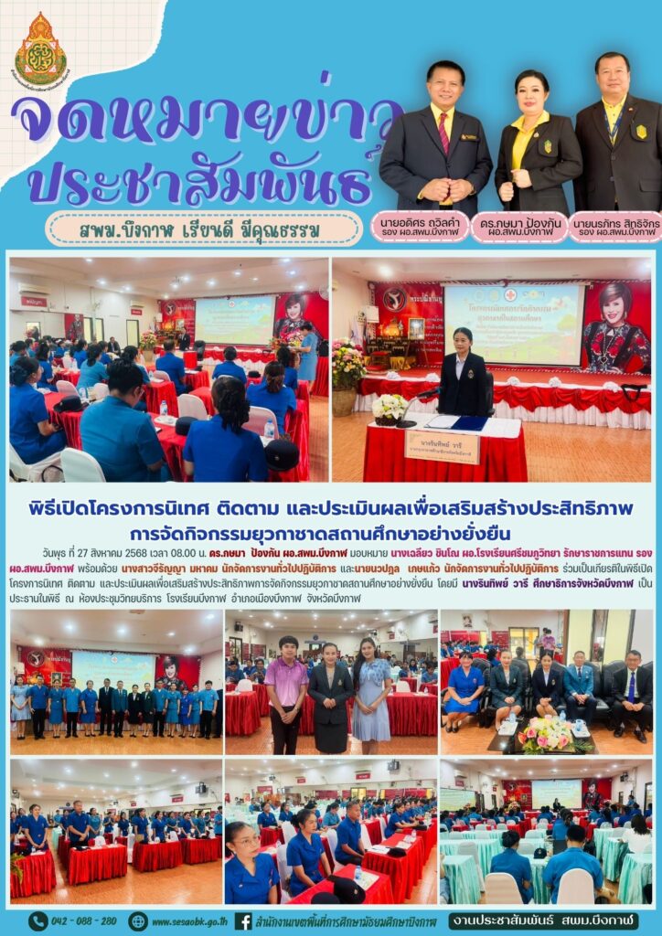 พิธีเปิดโครงการนิเทศ ติดตาม และประเมินผลเพื่อเสริมสร้างประสิทธิภาพการจัดกิจกรรมยุวกาชาดสถานศึกษาอย่างยั่งยืนBy นางสาววริศรา ธรรมลี / 27 สิงหาคม 2025