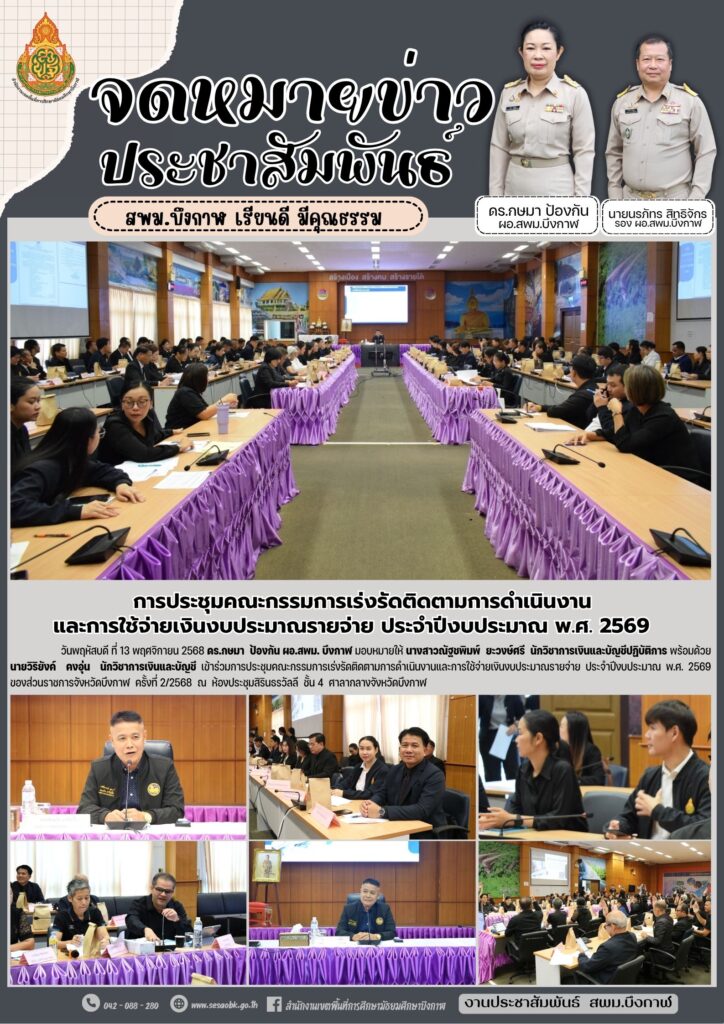 การประชุมคณะกรรมการเร่งรัดติดตามการดำเนินงานและการใช้จ่ายเงินงบประมาณรายจ่าย ประจำปีงบประมาณ พ.ศ. 2569By นางสาววริศรา ธรรมลี / 13 พฤศจิกายน 2025