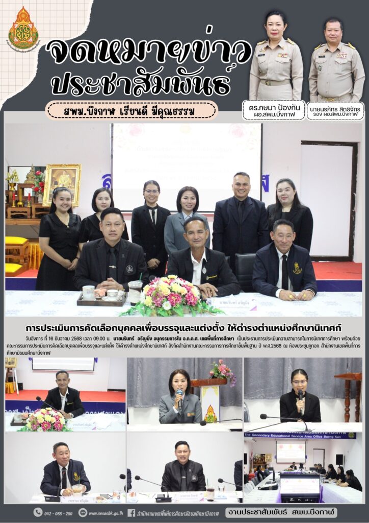 การประเมินการคัดเลือกบุคคลเพื่อบรรจุและแต่งตั้ง ให้ดำรงตำแหน่งศึกษานิเทศก์By นางสาววริศรา ธรรมลี / 16 ธันวาคม 2025
