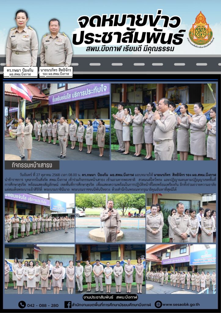 จดหมายข่าว สพม.บึงกาฬกิจกรรมหน้าเสาธง เข้าแถวเคารพธงชาติ Leave a Comment / จดหมายข่าว สพม.บึงกาฬ / นางสาววริศรา ธรรมลี