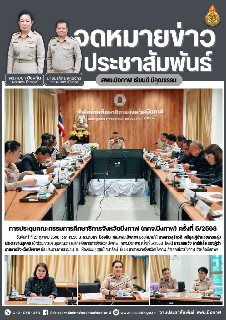 จดหมายข่าว สพม.บึงกาฬการประชุมคณะกรรมการศึกษาธิการจังหวัดบึงกาฬ (กศจ.บึงกาฬ) ครั้งที่ 5/2568 Leave a Comment / จดหมายข่าว สพม.บึงกาฬ / นางสาววริศรา ธรรมลี