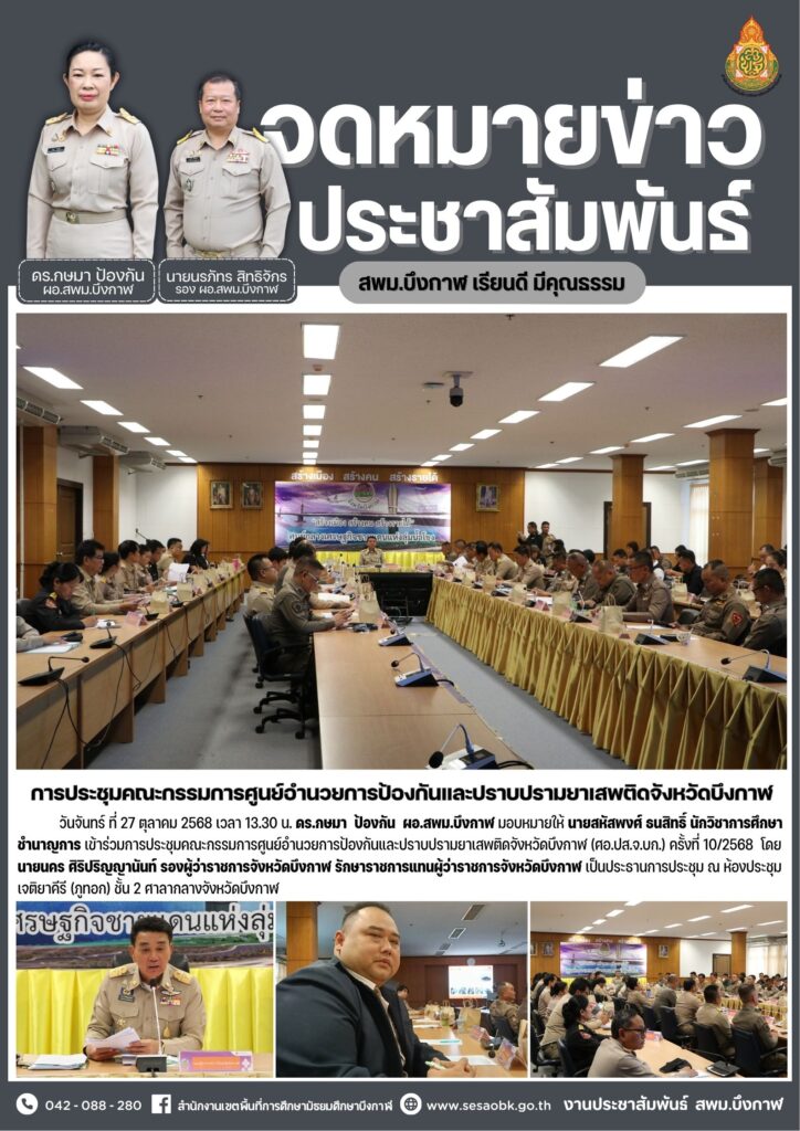 จดหมายข่าว สพม.บึงกาฬการประชุมคณะกรรมการศูนย์อำนวยการป้องกันและปราบปรามยาเสพติดจังหวัดบึงกาฬ (ศอ.ปส.จ.บก.) ครั้งที่ 10/2568 Leave a Comment / จดหมายข่าว สพม.บึงกาฬ / นางสาววริศรา ธรรมลี