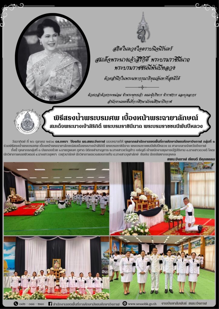จดหมายข่าว สพม.บึงกาฬพิธีสรงน้ำพระบรมศพ เบื้องหน้าพระฉายาลักษณ์สมเด็จพระนางเจ้าสิริกิติ์ พระบรมราชินีนาถ พระบรมราชชนนีพันปีหลวง Leave a Comment / จดหมายข่าว สพม.บึงกาฬ / นางสาววริศรา ธรรมลี