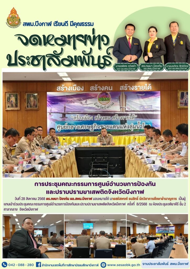 จดหมายข่าว สพม.บึงกาฬการประชุมคณะกรรมการศูนย์อำนวยการป้องกันและปราบปรามยาเสพติดจังหวัดบึงกาฬ ครั้งที่ 8/2568 Leave a Comment / จดหมายข่าว สพม.บึงกาฬ / นางสาววริศรา ธรรมลี