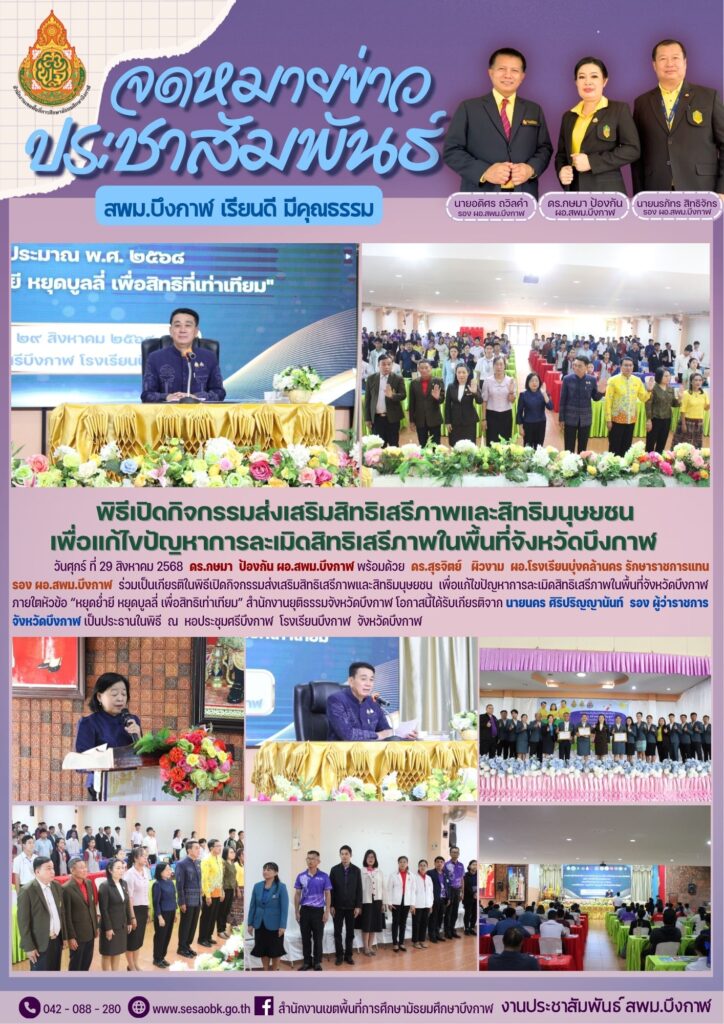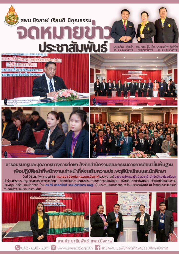 จดหมายข่าว สพม.บึงกาฬพิธีปิดกิจกรรมอบรมนักเรียนแกนนำ “สพฐ.สร้างสรรค์ ปันสุข” ประจำปีงบประมาณ พ.ศ.2568 Leave a Comment / จดหมายข่าว สพม.บึงกาฬ / นางสาววริศรา ธรรมลี
