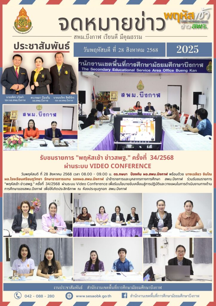 จดหมายข่าว สพม.บึงกาฬร่วมรับชมรายการ “พฤหัสเช้า ข่าวสพฐ.” ครั้งที่ 34/2568 ผ่านระบบ Video Conference Leave a Comment / จดหมายข่าว สพม.บึงกาฬ / นางสาววริศรา ธรรมลี