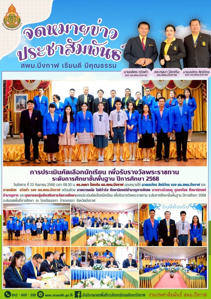 จดหมายข่าว สพม.บึงกาฬการประเมินคัดเลือกนักเรียน เพื่อรับรางวัลพระราชทาน ระดับการศึกษาขั้นพื้นฐาน ปีการศึกษา 2568 ระดับเขตพื้นที่การศึกษา Leave a Comment / จดหมายข่าว สพม.บึงกาฬ / นางสาววริศรา ธรรมลี