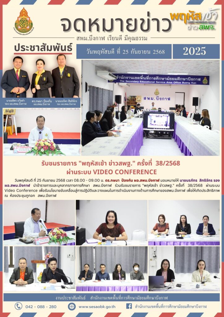 จดหมายข่าว สพม.บึงกาฬร่วมรับชมรายการ “พฤหัสเช้า ข่าวสพฐ.” ครั้งที่ 38/2568 ผ่านระบบ Video Conference Leave a Comment / จดหมายข่าว สพม.บึงกาฬ / นางสาววริศรา ธรรมลี