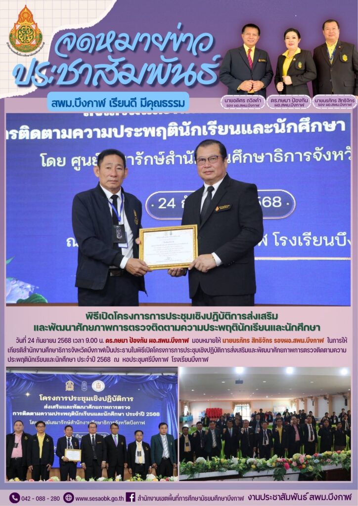จดหมายข่าว สพม.บึงกาฬพิธีเปิดโครงการการประชุมเชิงปฏิบัติการส่งเสริมและพัฒนาศักยภาพการตรวจติดตามความประพฤตินักเรียนและนักศึกษา ประจำปี 2568 Leave a Comment / จดหมายข่าว สพม.บึงกาฬ / นางสาววริศรา ธรรมลี