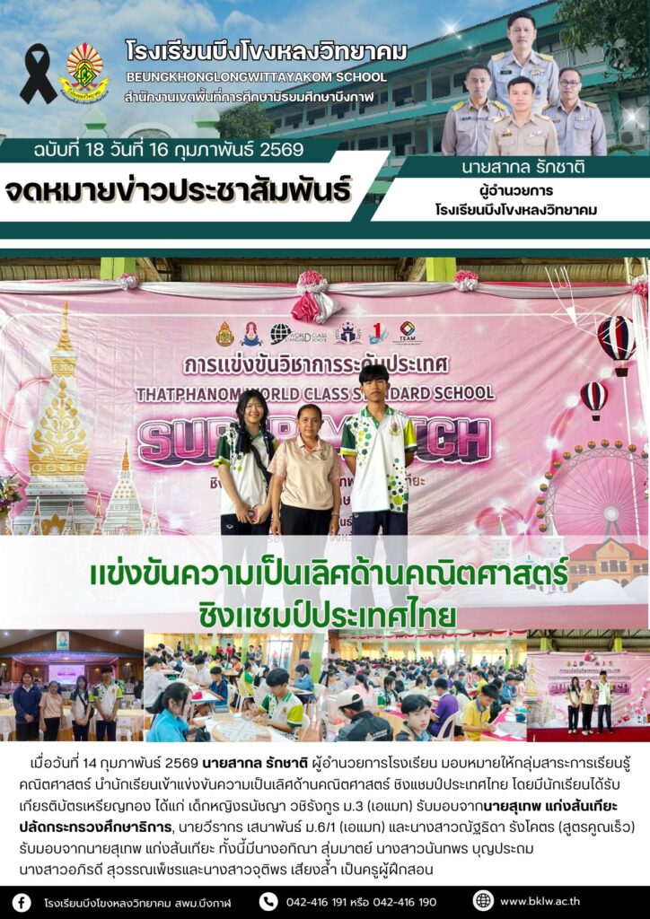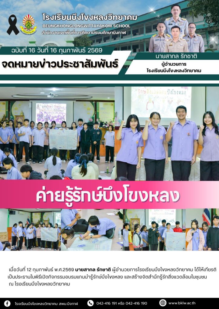 จดหมายข่าวโรงเรียนจดหมายข่าวโรงเรียนบึงโขงหลงวิทยาคม เดือน กุมภาพันธ์ 2569 Leave a Comment / จดหมายข่าวโรงเรียน / Piyawadee