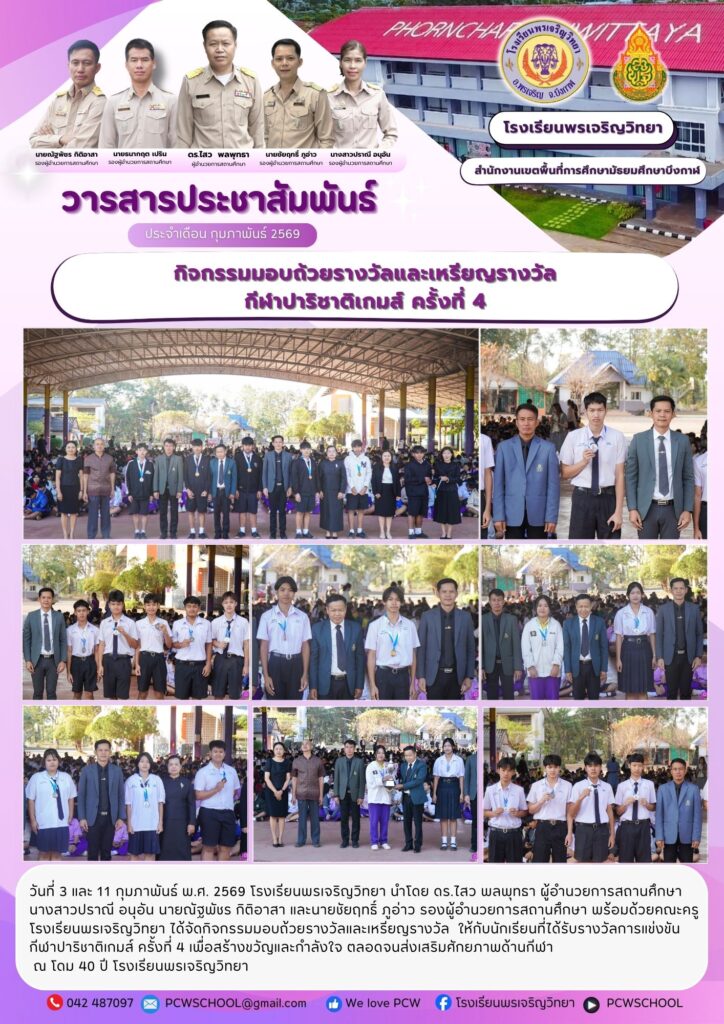 จดหมายข่าวโรงเรียนจดหมายข่าวโรงเรียนพรเจริญวิทยา เดือน กุมภาพันธ์ 2568 Leave a Comment / จดหมายข่าวโรงเรียน / นางสาวพัชญาพร p